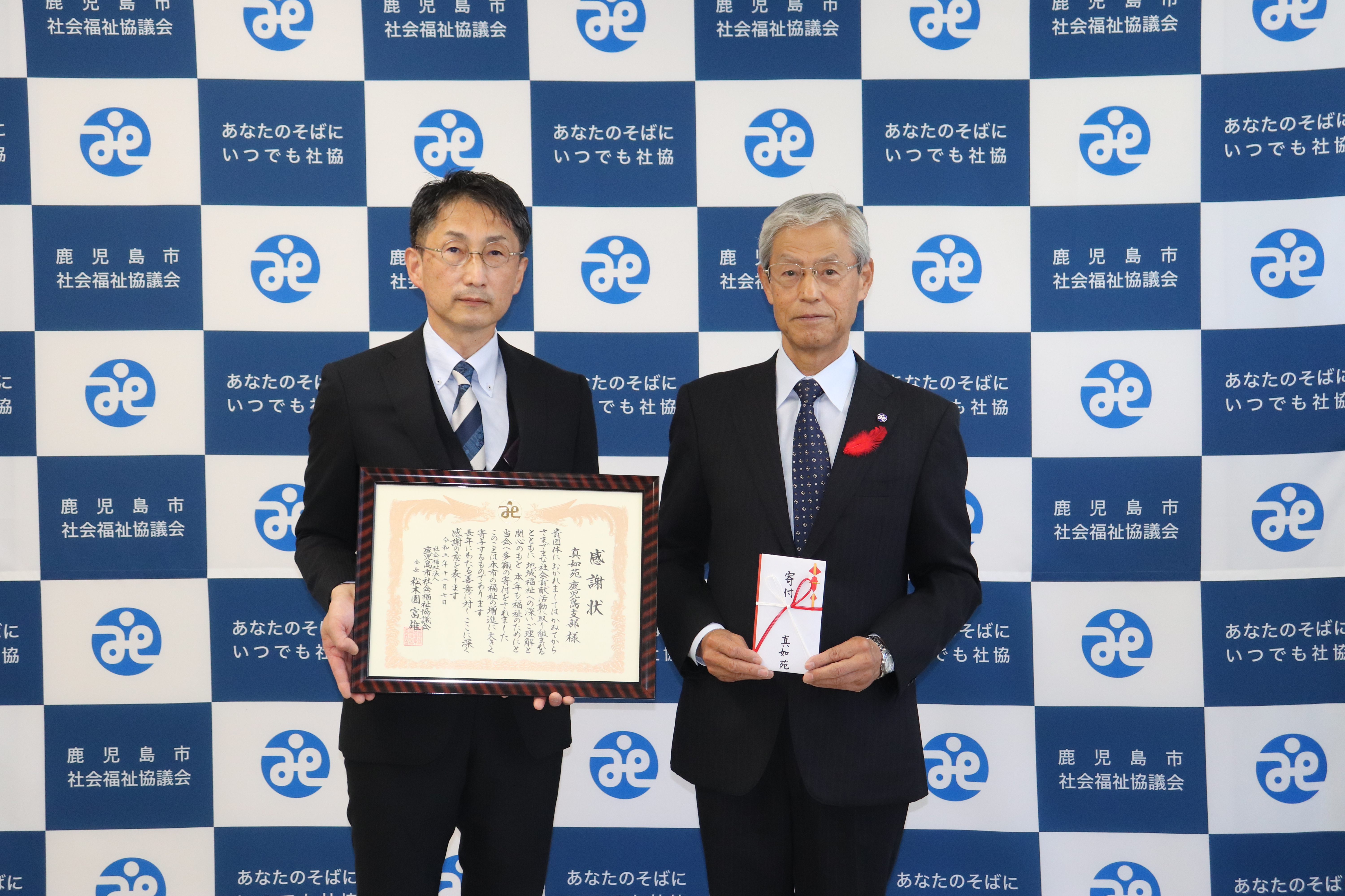 寄付金贈呈(真如苑 鹿児島支部 様) お知らせ2021年12月9日 12月7日(火)真如苑 鹿児島支部 様から福祉のためにとご寄付をいただきました。毎年ご寄付をいただいており、今回で27回目のご寄付となります。心より感謝申し上げます。ありがとうございました。 1 贈呈者 真如苑 鹿児島支部 様 2 寄付額 200,000円(累計970万円) 真如苑 鹿児島支部 主務 福留 様(左)