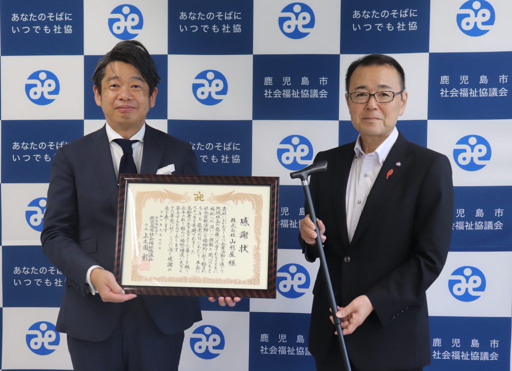 株式会社山形屋 様におかれましては、かねてから社会貢献活動に積極的に取り組まれ、今回も、高齢者の方々に生き生きと暮らしていただきたいとの思いから、敬老の日にあたり寄贈されたものです。