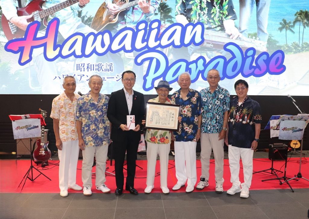 令和7年8月15日(金)、ハワイアンバンド「田中ケンサク&ハワイアンパラダイス」様から、結成65周年を記念してご寄付をいただきました。